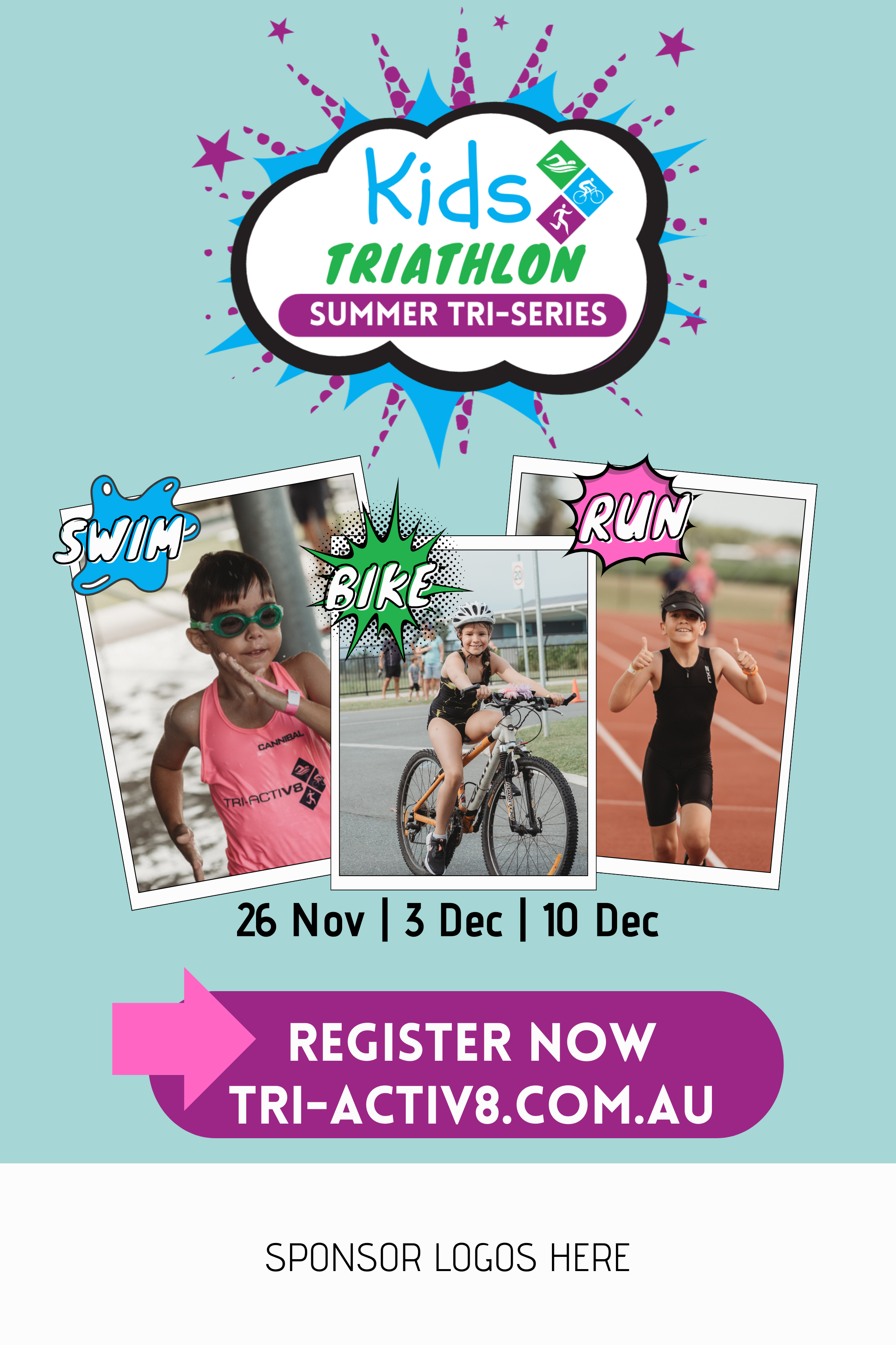 Become a 2023 Sponsor for the annual Kids Triathlon Summer Tri-Series - Mackay’s only triathlon series for kids. This 3-part series will be held on 26 November, 3 December and 10 December at the MARC (Mackay Aquatic & Recreation Centre).